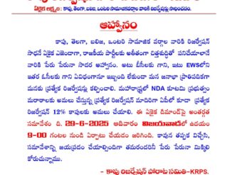 రిజర్వేషన్లపై KRPS స్పష్టమైన వైఖరి ‘‘ఎవరెంతో వారికంత’’, […]