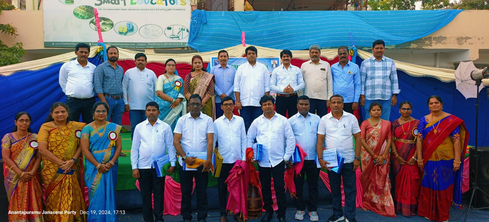 విద్యార్థులు అంటే రాష్ట్ర ఉప ముఖ్యమంత్రి శ్రీ పవన్ కళ్యాణ్ గారికి అమితమైన ప్రేమ అని అహుడా చైర్మన్ శ్రీ టి.సి.వరుణ్ గారు అన్నారు. అనంతపురము హౌసింగ్ బోర్డ్ శ్రీ చైతన్య బాలికల రెసిడెన్షియల్ స్కూల్ లో గురు సన్మాన సభ ఘనంగా నిర్వహించారు. కార్యక్రమానికి ముఖ్య అతిథిగా అహుడా చైర్మన్ శ్రీ టీ.సి.వరుణ్ గారు, ఏ.జీ.ఎం.సుబ్బారెడ్డి గారు హాజరై జ్యోతి ప్రజ్వలన చేసి కార్యక్రమాన్ని ప్రారంభించారు. కరతాల ధ్వనులతో శ్రీ టీ.సీ.వరుణ్ గారికి విద్యార్థులు ఘన స్వాగతం పలికారు. ఈ సందర్భంగా శ్రీ టి.సి.వరుణ్ గారు మాట్లాడుతూ… నేడు ఉపాధ్యాయులు లేకుంటే ఏ రంగం అభివృద్ధి చెందదన్నారు. విద్యాబుద్ధులను నేర్పి ఉన్నత పౌరులుగా తీర్చిదిద్దడంలో వారి పాత్ర గణనీయమైనదని పేర్కొన్నారు. కార్యక్రమంలో భాగంగా వివిధ విషయ నిపుణులైన ఉపాధ్యాయులకు 2023-24 లో 598 మార్కులతో స్టేట్ ర్యాంకు సాధించడానికి దోహదపడిన ఉపాధ్యాయులకు పురస్కారాలను, నగదు బహుమతిని ముఖ్యఅతిథిగా విచ్చేసిన శ్రీ టి.సి.వరుణ్ గారి చేతుల మీదుగా అందించారు. అధ్యాపకులు వారి అనుభవాలను మాట పాట పద్య కవితల రూపంలో విద్యార్థులతో పంచుకున్నారు. కార్యక్రమంలో జనసేన పార్టీ నగర అధ్యక్షులు శ్రీ పొదిలి బాబురావు, జిల్లా కార్యదర్శి శ్రీ సిద్దు, ప్రిన్సిపల్ శ్రీ సమీనా ఖాన్, వైస్ ప్రిన్సిపల్ శ్రీ షమీనా, అకాడమిక్ కోఆర్డినేటర్లు శ్రీ రాధాకృష్ణ, శ్రీ ఇర్షాద్, శ్రీ తిరుమలేష్, శ్రీ నాగభూషణం, డీన్ శ్రీ సత్యనారాయణ, శ్రీ చంద్రమోహన్, శ్రీ చైతన్య స్కూల్ ప్రిన్సిపల్స్, డీన్లు, ఉపాధ్యాయులు పాల్గొన్నారు.