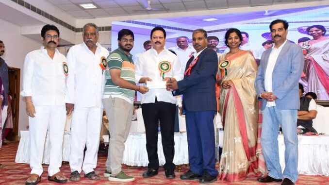 “ఆప్తా” స్కాలర్షిప్పుల పంపిణీ కార్యక్రమంలో ముఖ్య అతిథులుగా పాల్గొన్న పూర్వ కలెక్టర్ లక్ష్మీకాంతం, ఢిల్లీ మెండు చక్రపాణి.