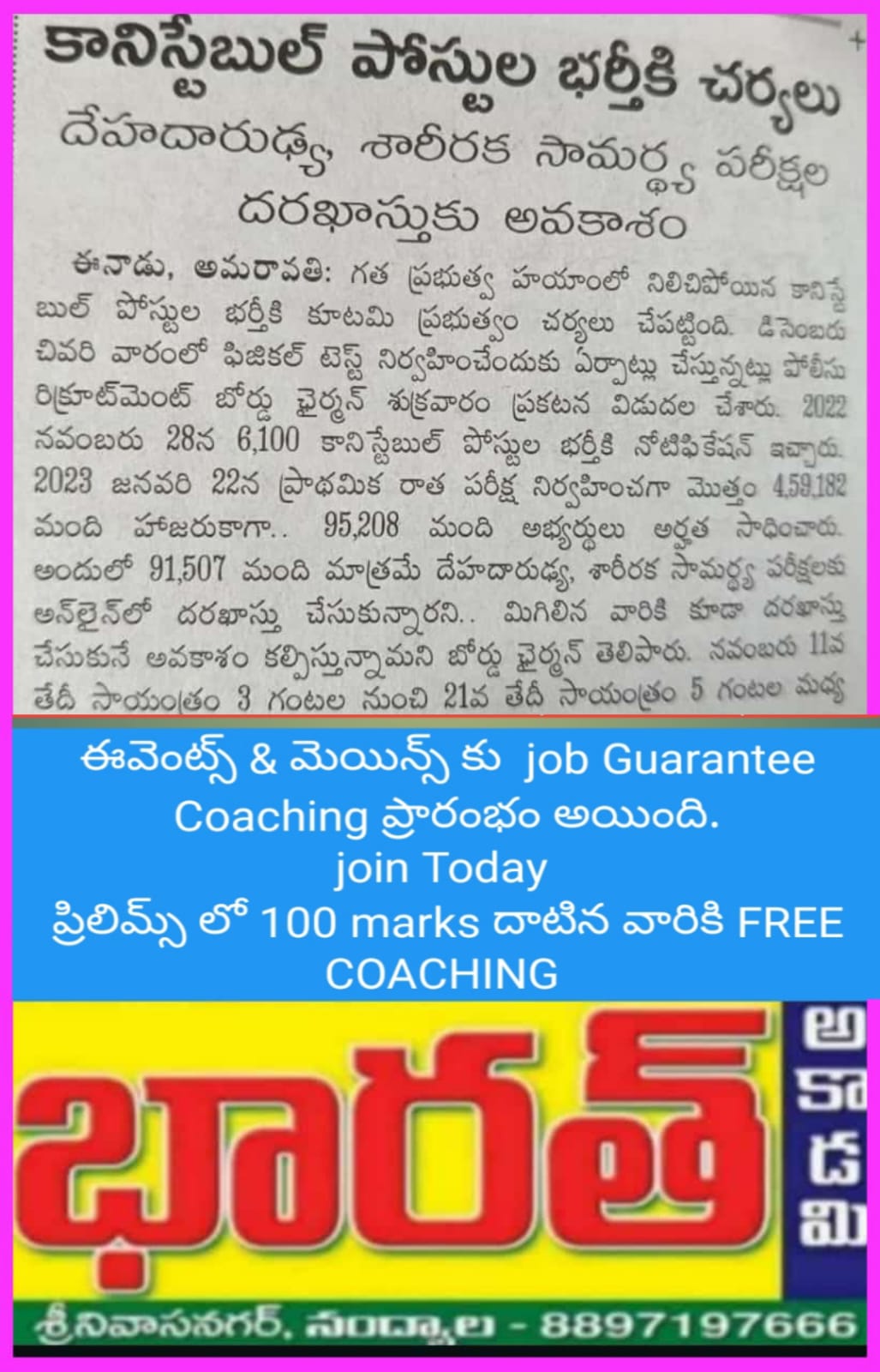 👉 AP – PC ప్రిలిమ్స్ లో Qualify ఇన వారికి ఈవెంట్స్ కు FREE కోచింగ్ ఇస్తున్నాం…