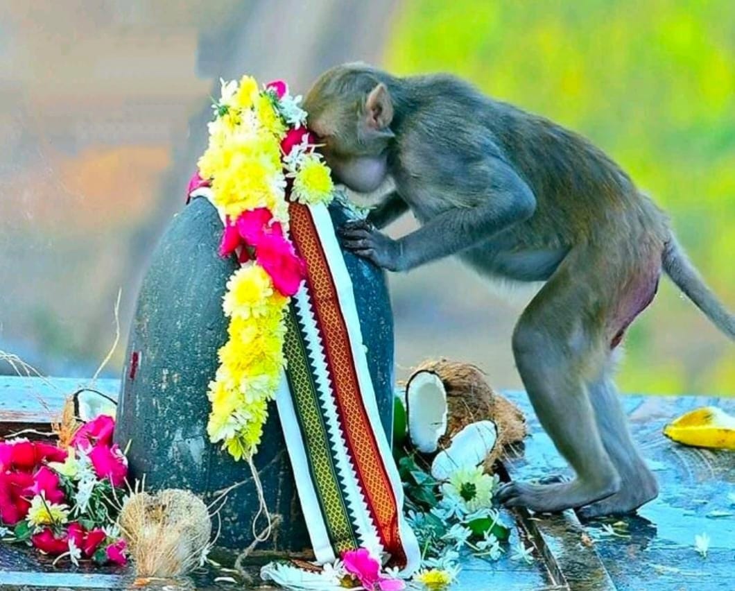 ఆ సమయంలో ఓ కోతి తన్మయత్వంతో శివలింగానికి మొక్కడం భక్తులను ఆకర్షించింది.