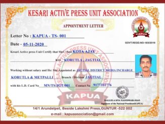 జగిత్యాల జిల్లా కోరుట్ల నియోజకవర్గ సీనియర్ పత్రికా […]