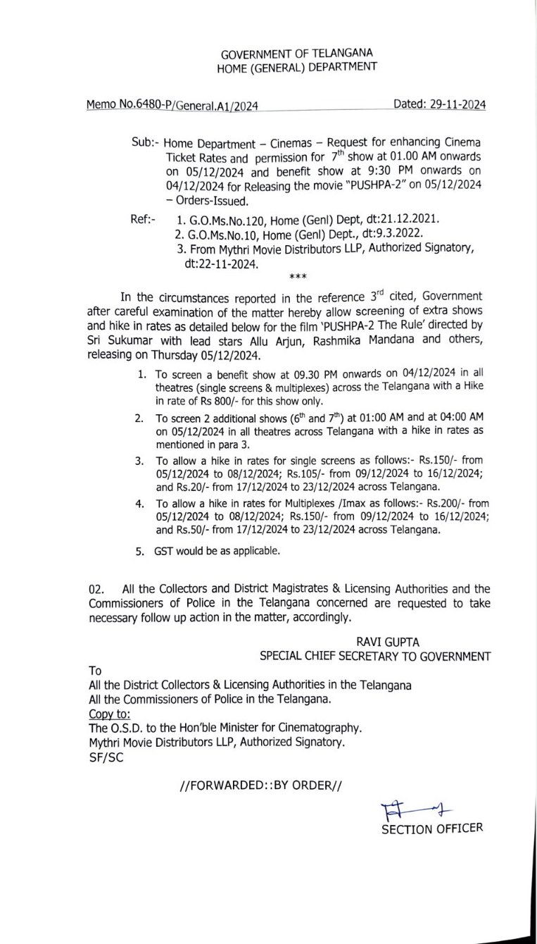 పుష్ప 2 టికెట్ రేట్లు పెంచుతూ అనుమతి