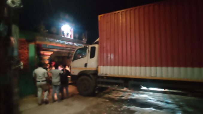 వరదయ్యపాళ్యం కళ్యాణ వెంకటేశ్వర స్వామి ఆలయం లోకి దూసుకెళ్లిన కంటైనర్ లారీ.