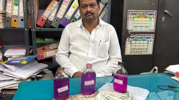 మార్కాపురం ఇరిగేషన్ కార్యాలయంలో సీనియర్ అసిస్టెంట్ శ్రీనివాసరావు ఒక కాంట్రాక్టర్ నుండి 30 వేల రూపాయిలు లంచం తీసుకుంటుండగా ఏసీబీ అధికారులు రెడ్ హ్యాండెడ్ గా పట్టుకున్నారు. ఇందుకు సంబంధించిన వివరాలను ఏసీబీ ఒంగోలు డీఎస్పీ ఎస్ శిరీష మీడియాకు వివరించారు. శ్రీనివాసరెడ్డి అనే కాంట్రాక్టర్ మూడు అభివృద్ధి పనులు చేశారు. పెండింగ్ బిల్లులు అప్రూవల్ చేసేందుకు సీనియర్ అసిస్టెంట్ 30 వేల రూపాయలు డిమాండ్ చేశాడు. లంచం ఇవ్వడానికి ఇష్టపడని కాంట్రాక్టర్ శ్రీనివాసరెడ్డి ఏసీబీ అధికారులను ఆశ్రయించాడు. దాంతో కాంట్రాక్టర్ నుండి 30 వేల రూపాయల లంచం తీసుకుంటుండగా ఏసీబీ అధికారులు పథకం ప్రకారం సీనియర్ అసిస్టెంట్ శ్రీనివాసరావును ఏసీబీ డిఎస్పీ శిరీష వలపన్ని పట్టుకున్నారు. ఈ దాడుల్లో ఏసీబీ ఇన్స్పెక్టర్లు రమేష్ బాబు, శేషు,సబ్-ఇన్స్పెక్టర్లు ప్రసాద్, మస్తాన్ షరీఫ్, సిబ్బంది పాల్గొన్నారు..